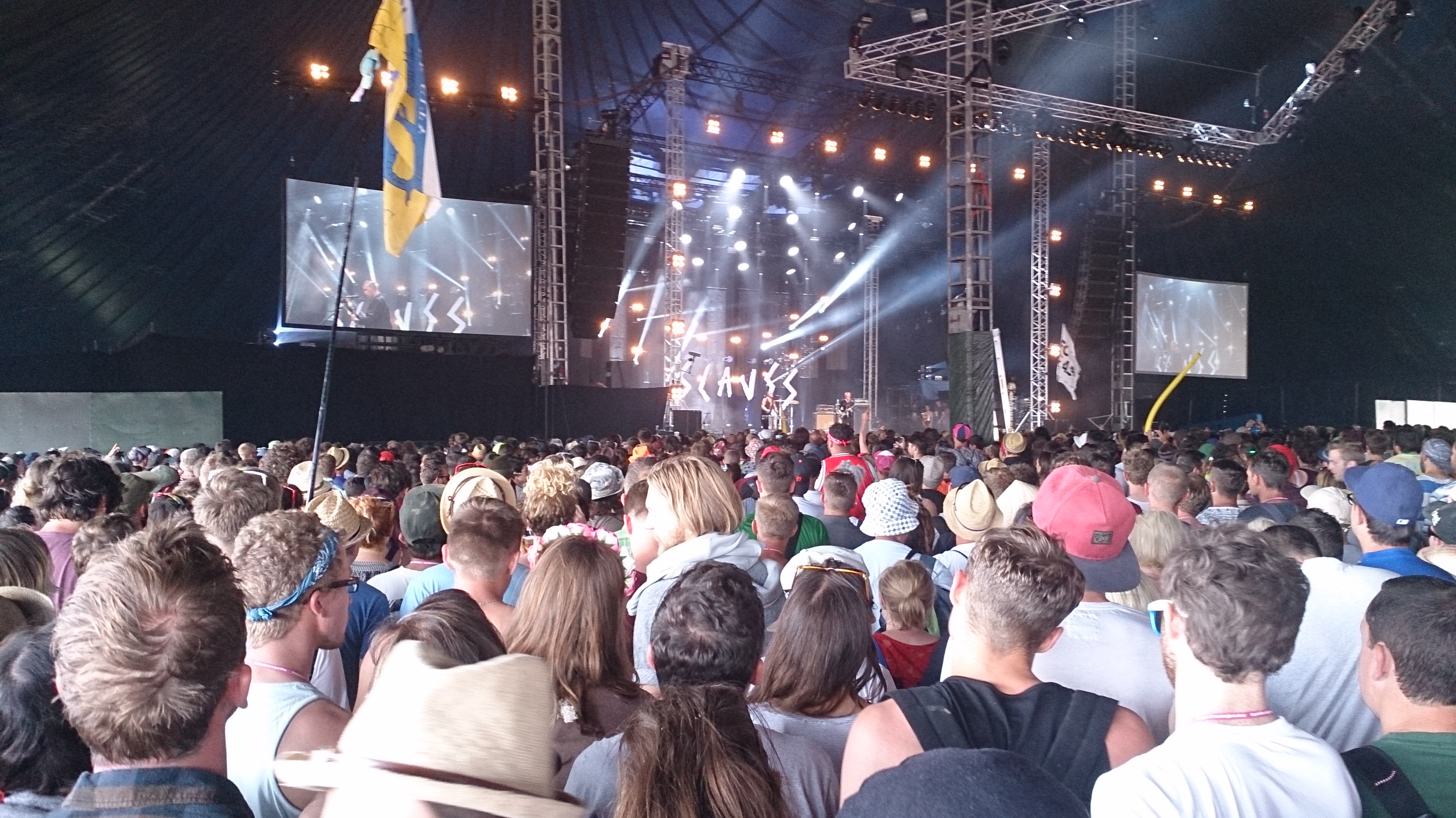 Into the sun and a trek to the Other Stage for the remainder of Young Fathers set. This band has just gone from strength to strength in the past 18 months. However, I was surprised they didn’t have a bigger crowd, considering their recent Mercury Music Prize win. A booming, unavoidable barrage of music and vocals came from the stage which screamed ‘take notice of us’. Sadly, the crowd was sleepy and it didn’t seem enough people wanted to take notice.