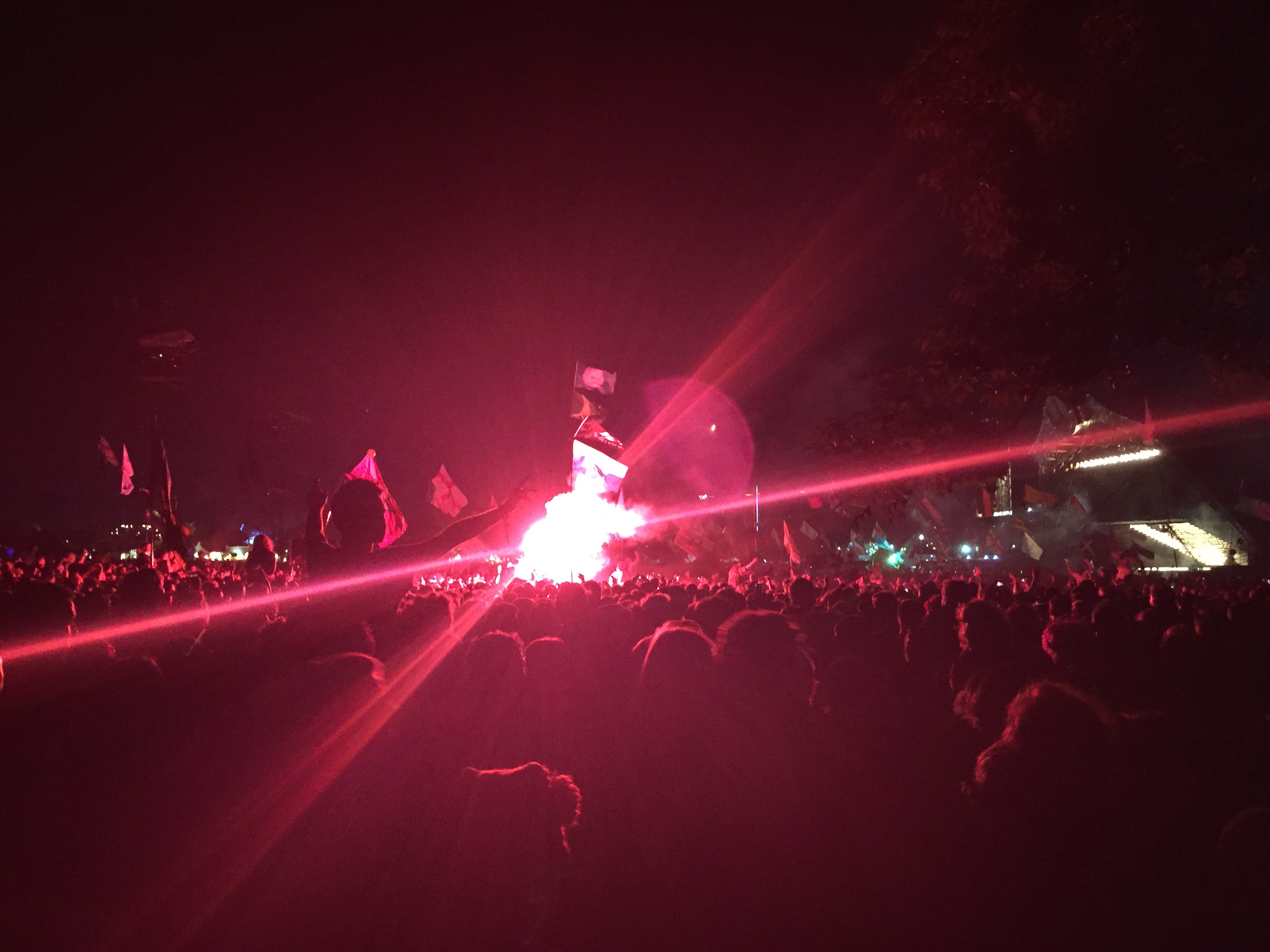 It’s at about this time you realise – right well I won’t be at the Pyramid Stage again this year or I won’t pass the Beat Hotel again this year, so you better pop in. Which we did and it’s pretty much like being transported to any Ibiza-uber club, and completely unintentionally happening upon Groove Armada and then the 2 Bears. We had some libations in the form of Pineapple Expresses (aka tequilla with pineapple and sherbet) and danced a merry dance ’til it was time to head for our final main stage performance of the weekend.